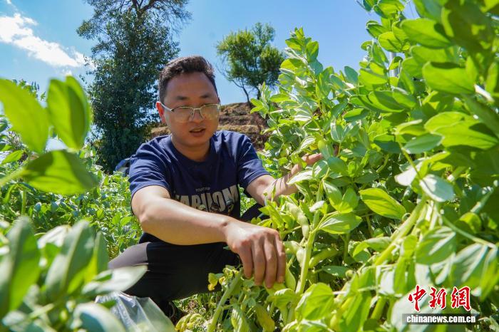 图为3月24日,威宁自制县哲觉镇中收村蔬菜基天,莳植户正在采支蚕豆。赵庆能 摄