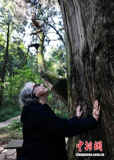 图为去自好邦的卡珊娣触摸1株古柏。中新社记者 王磊 摄