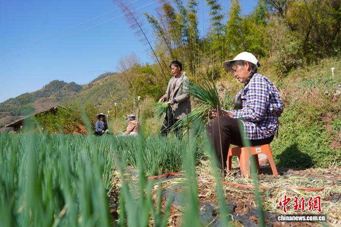 图为3月24日,威宁自制县哲觉镇瓦竹村小葱栽植基天,务工大众采支小葱。赵庆能 摄